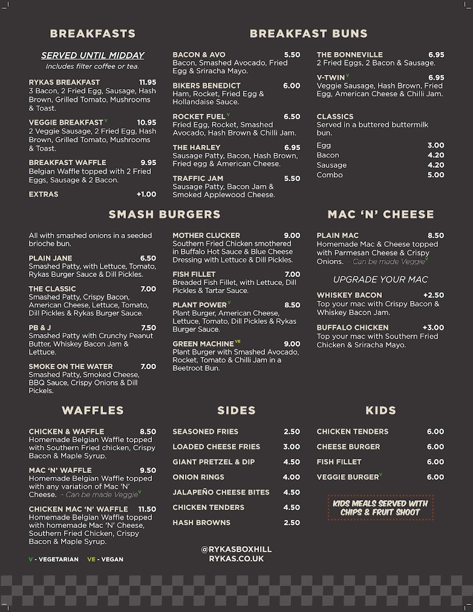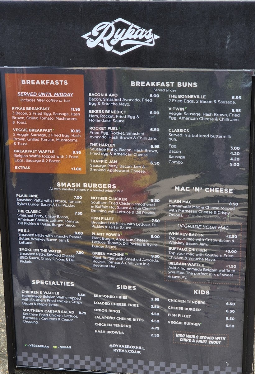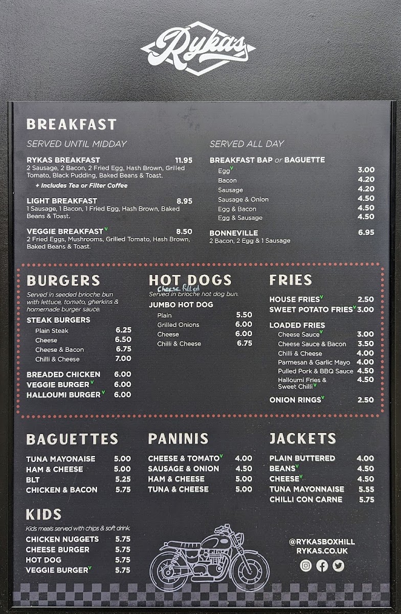 Welcome to Rykas Boxhill, a gem nestled on Old London Rd in Dorking, where food and biking culture converge. This revitalized cafe not only serves up hearty meals but also embraces the historical charm of bike enthusiasts. With an array of smash burgers, breakfast treats, and outdoor seating, there's something for everyone.